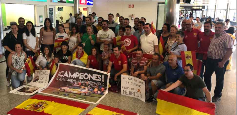 A medio dia de hoy han llegado al aeropuerto de Santander los recientemente proclamados Campeones de Europa Junior, Efren Llarena y Sara Fernández, que fueron recibidos por cerca de un centenar de amigos, familiares y aficionados que no quisieron perder la oportunidad de felicitar a los campeones nada más pisar suelo cántabro. También estuvieron presentes el Director Regional de Deportes, Mario Iglesias; el presidente de la Federación Cántabra de Automovilismo, Gonzalo Pérez y José Vicente Medina en representación de la federación nacional.