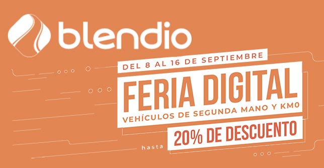 Desde el pasado día 8 y hasta el próximo 16 de septiembre, el Grupo Blendio celebra la Gran Feria Digital en su web, blendio.es. Durante estos días, los usuarios podrán acceder a descuentos exclusivos de hasta el 20% en vehículos de ocasión y KM 0 seleccionados entre una amplia variedad de modelos disponibles.